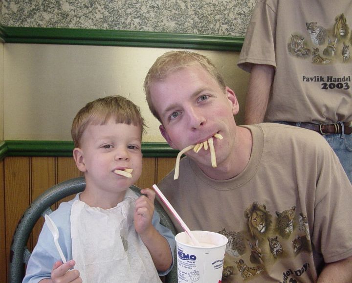 During a quick lunch, my nephew Mark and I decided to play with our food at