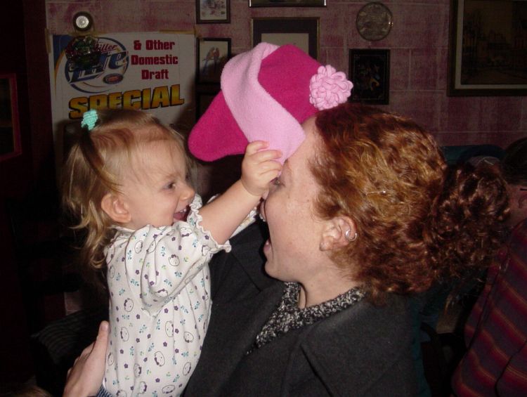 Look at my niece! Chris, Brenda and the kids came to Columbus to surprise Dad for his birthday. Here I'm holding less-than-one-year-old Emily. She has such large, pretty eyes!