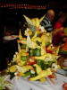 These pics show the midnight buffet. The first is the dessert table (now you see why we ate so much?) and the second shows the decorative talents of the kitchen staff.
