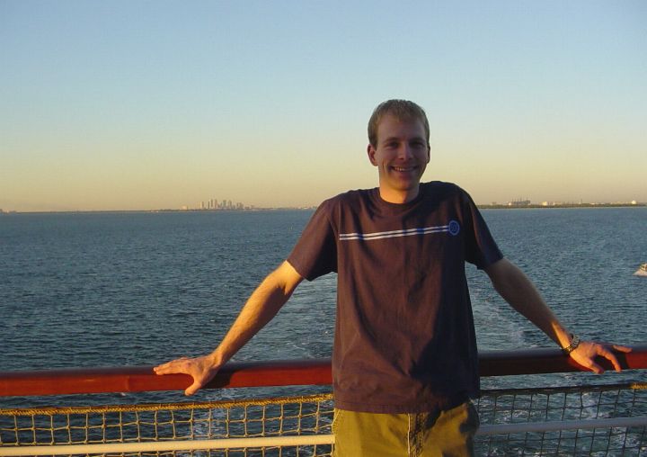 At the end of 2003 I took a cruise to Cozumel, Mexico! I'm pictured here as our ship steams out of Tamps, Fl (you can see it way back in the distance to the left). The cruise was "free" - it was one of those "listen to our sales pitch and we'll give you a free cruise" deals. And it actually worked! I took my friend Josh from Cedarville and we enjoyed relaxing on the ship and exploring Cozumel.