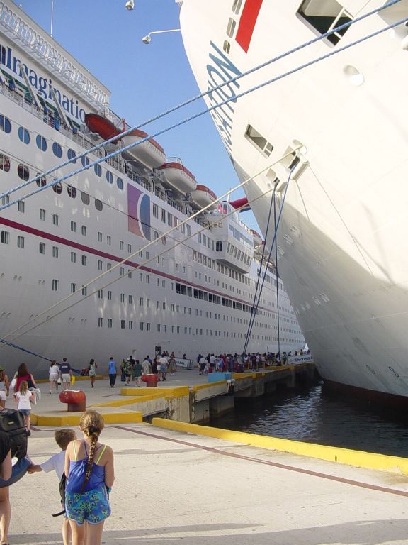 Before heading into downtown, we returned to the ship to wash off the sunscreen and dress up a bit. Here are two pics of the ship as it sits in the harbor. The one on the right shows you just how huge these are!
