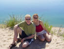Above from left to right are pictures of us in my apartment, in the circle of downtown Indianapolis, and on a sand dune near the shore of Lake Michigan.  To the right, you can see Emily, my niece, trying to figure out how to fit her hat on Alyssa's head. My nephew and niece have a blast with her!