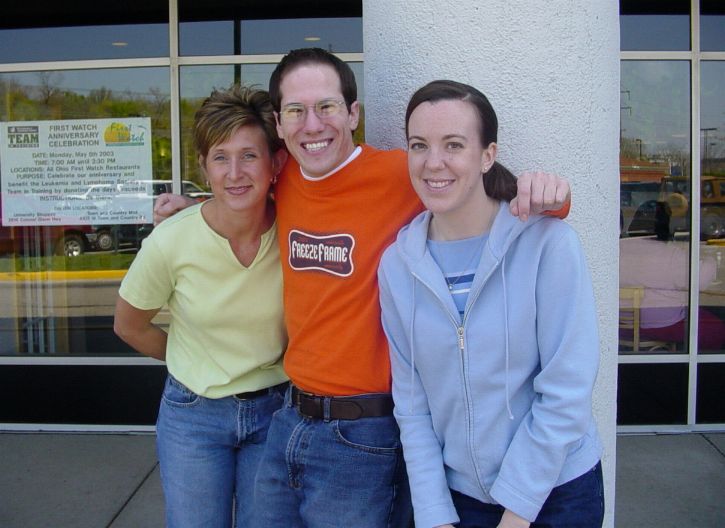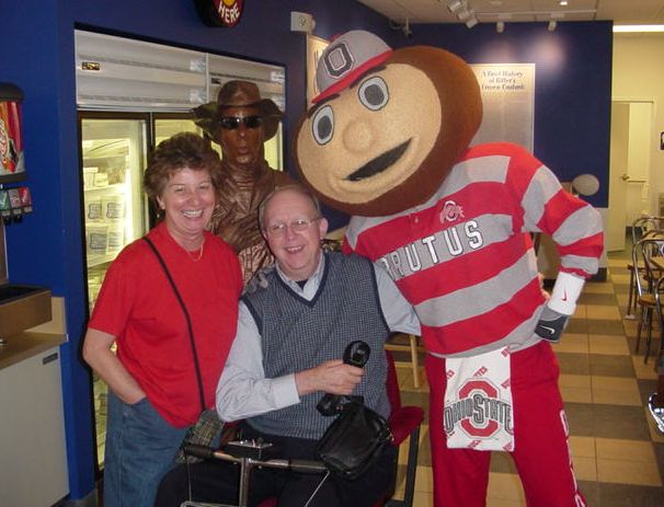 Now you know where Brutus Buckeye hangs out - Ritter's Custard! Here Mom and Dad check out the grand opening and pose with the mascot. Also behind Mom is a guy painted like a bronze statue. He would walk around and "freeze" for minutes at a time. He was really good at it!
